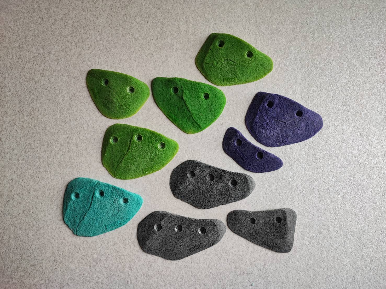 黄緑は現行カラーではありません。個数は10個ですが同じシェイプが混ざっています。
