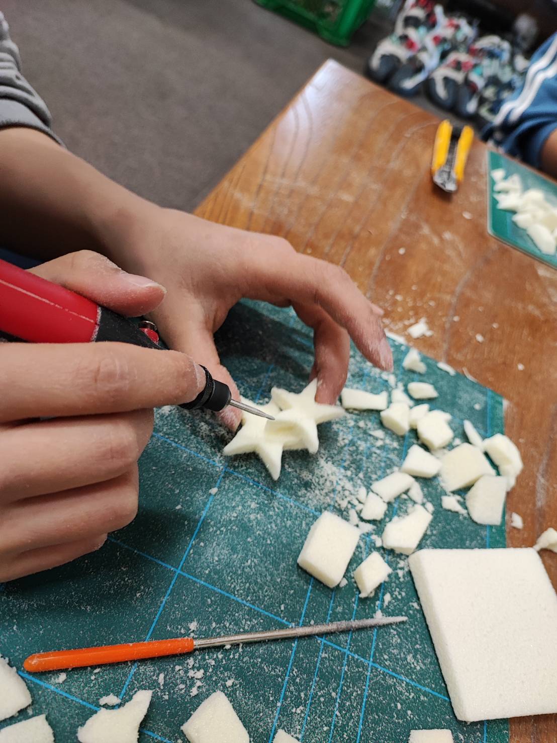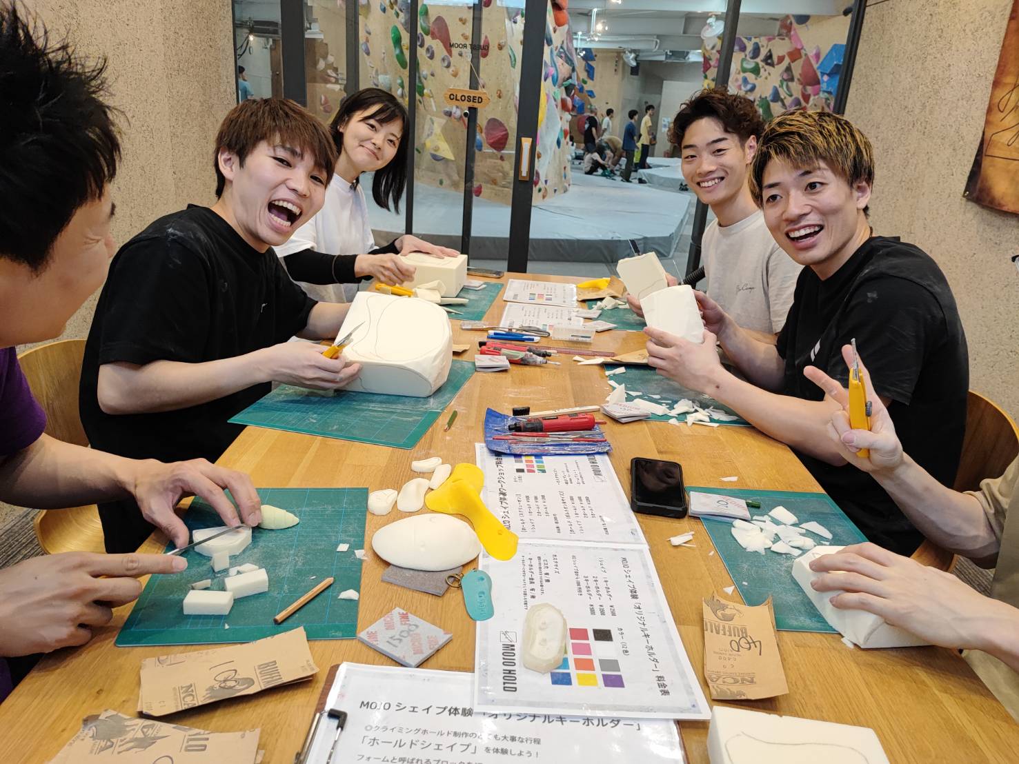 クライミングホールドが作られる工程を第一段階「シェイプ」を体験するプログラムです。